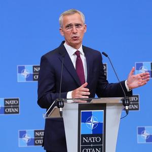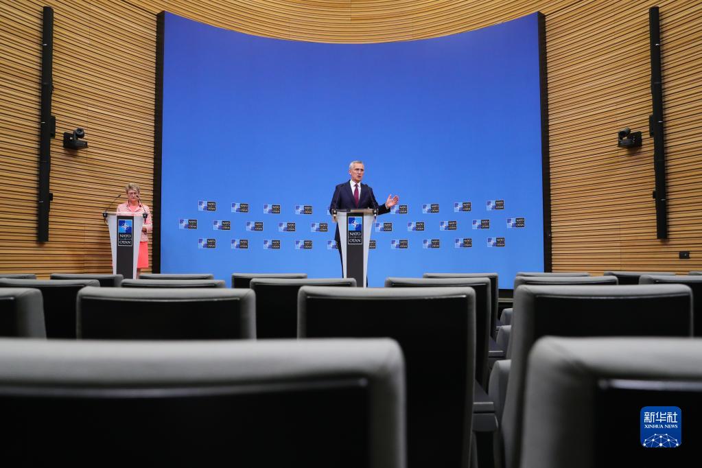 7月6日,在比利時布魯塞爾的北約總部,北約秘書長斯托爾滕貝格在會議后召開新聞發布會。