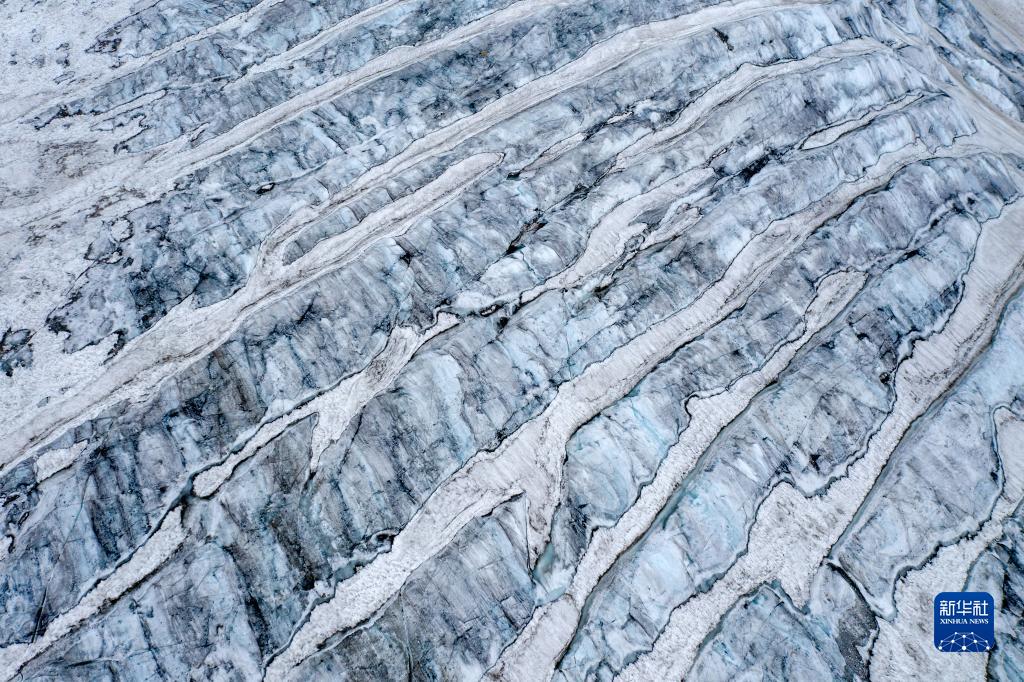 這是玉龍雪山白水河1號冰川一角(6月16日攝,無人機照片)。