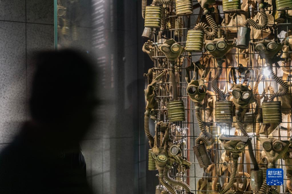 7月7日,參觀者在侵華日軍第七三一部隊罪證陳列館內參觀。