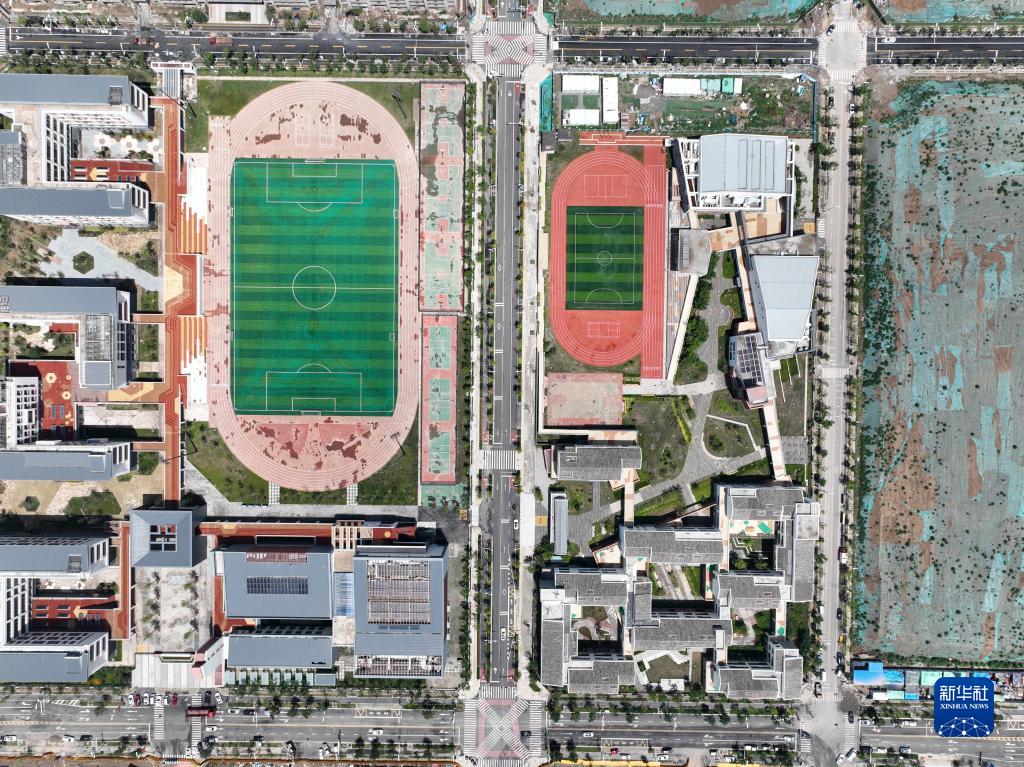 這是位于河北雄安新區啟動區的史家胡同小學雄安校區(右)和北京四中雄安校區(7月4日攝,無人機照片)。史家胡同小學雄安校區和北京四中雄安校區均為北京支持雄安建設的“三校一院”交鑰匙項目,將全面提升雄安新區的教育質量,實現優質教育資源共享,推動北京非首都功能有序疏解。