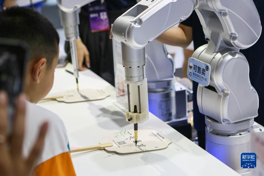 7月7日,Azero機械手臂進行書法表演。