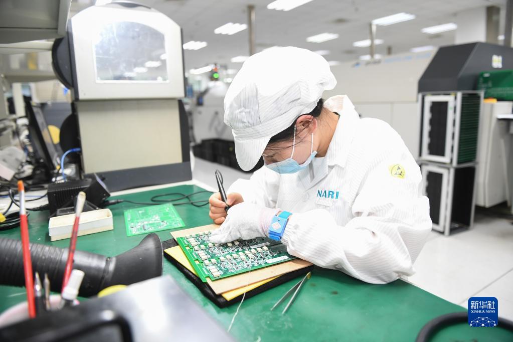 7月7日,在南瑞集團有限公司智能制造生產(chǎn)區(qū),工人維修電路板。