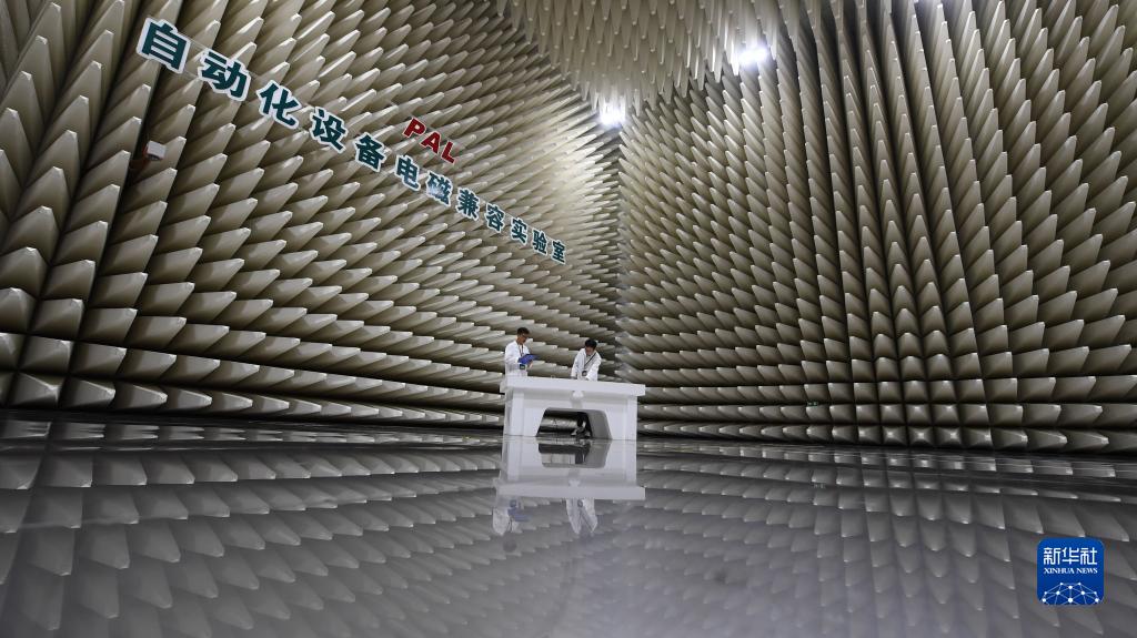 7月7日,在南瑞集團有限公司自動化設備電磁兼容實驗室,科研人員在進行輻射發射實驗準備工作。