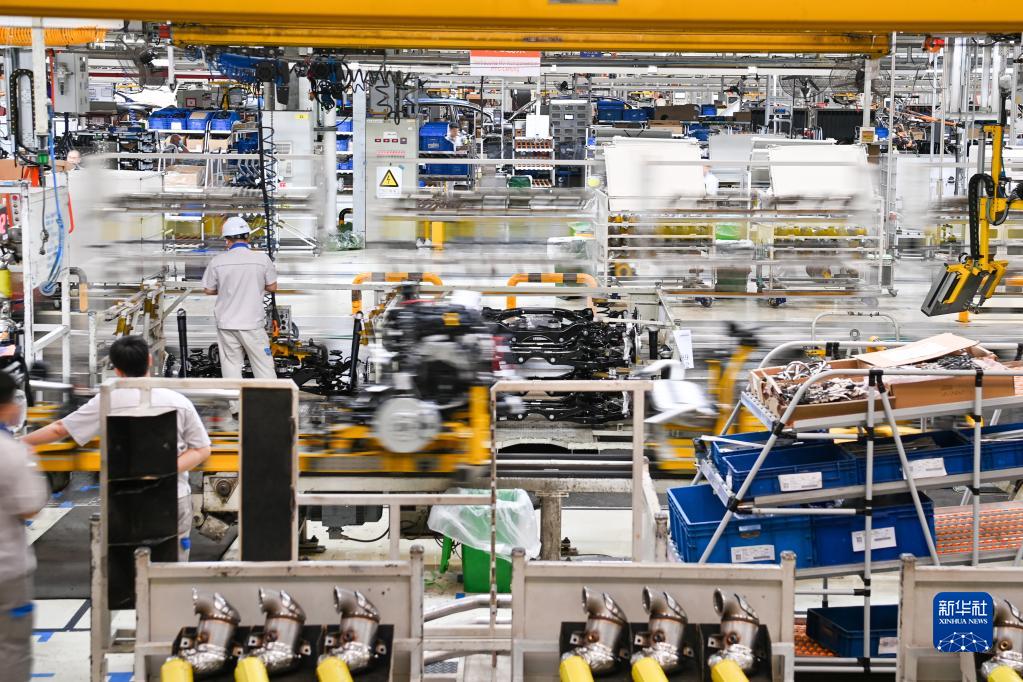 在位于吉林長春的一汽-大眾長春生產(chǎn)整車制造二部總裝二車間,工人在生產(chǎn)線上裝配車輛(6月12日攝)。