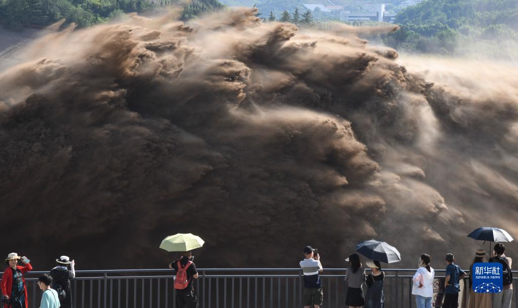 7月7日,游客觀看黃河小浪底水庫(kù)排沙出庫(kù)。