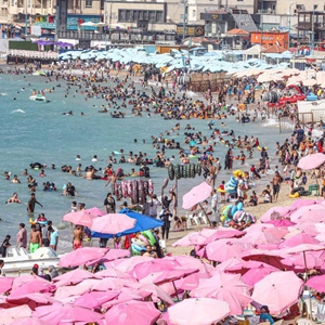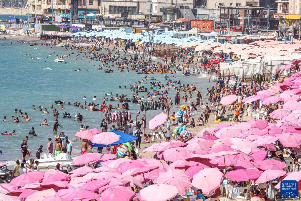 7月6日,人們在埃及亞歷山大的海邊游玩消暑。