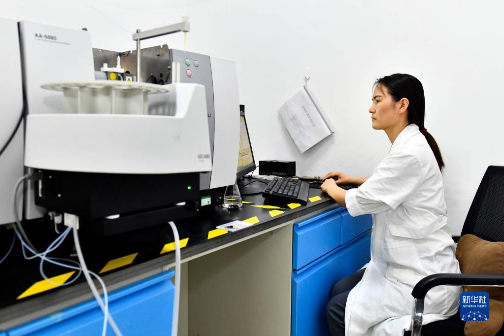7月7日,在北京葆年堂(菏澤)藥業有限公司,工作人員對中藥材進行農殘和重金屬檢測。