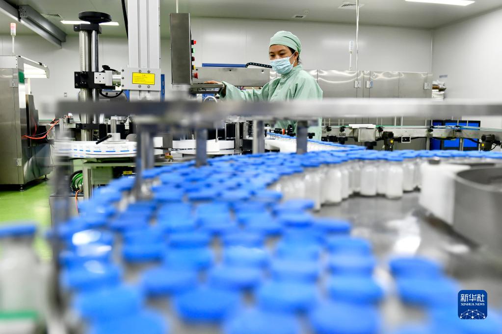 7月7日,在菏澤了未元生物醫藥大健康產業園,工作人員在抗生素生產線值守。