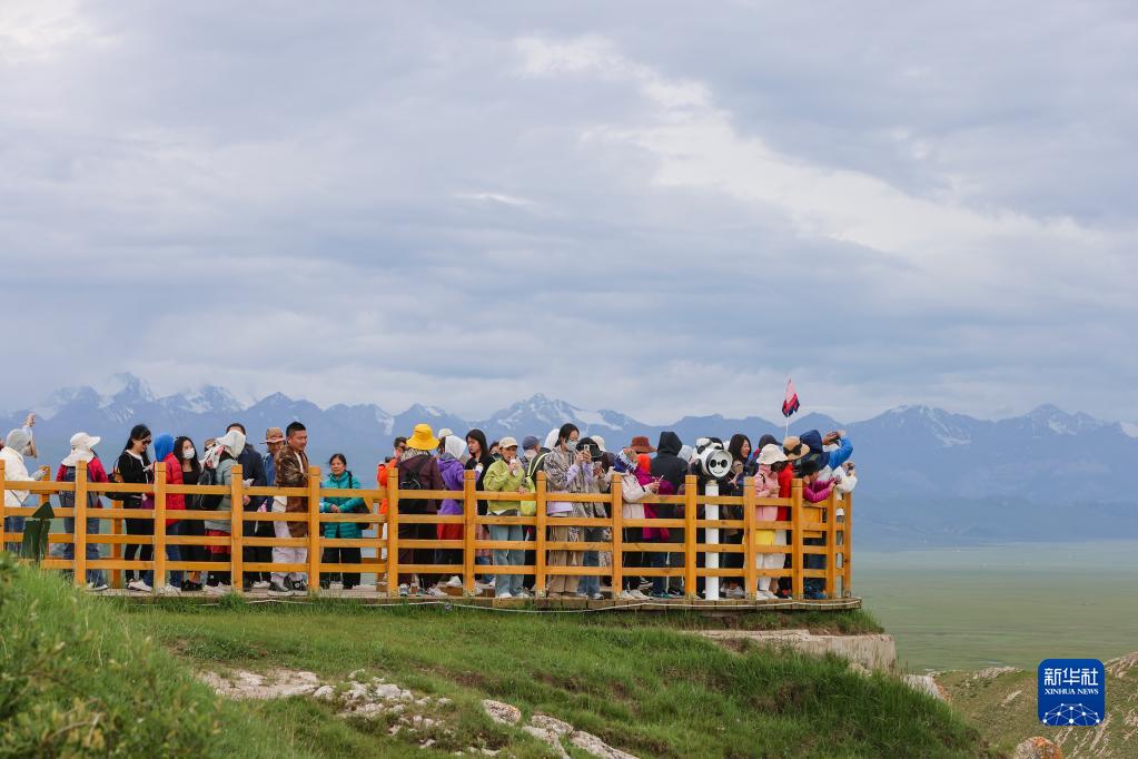 游客在巴音布魯克九曲十八彎景區(qū)參觀(7月6日攝)。