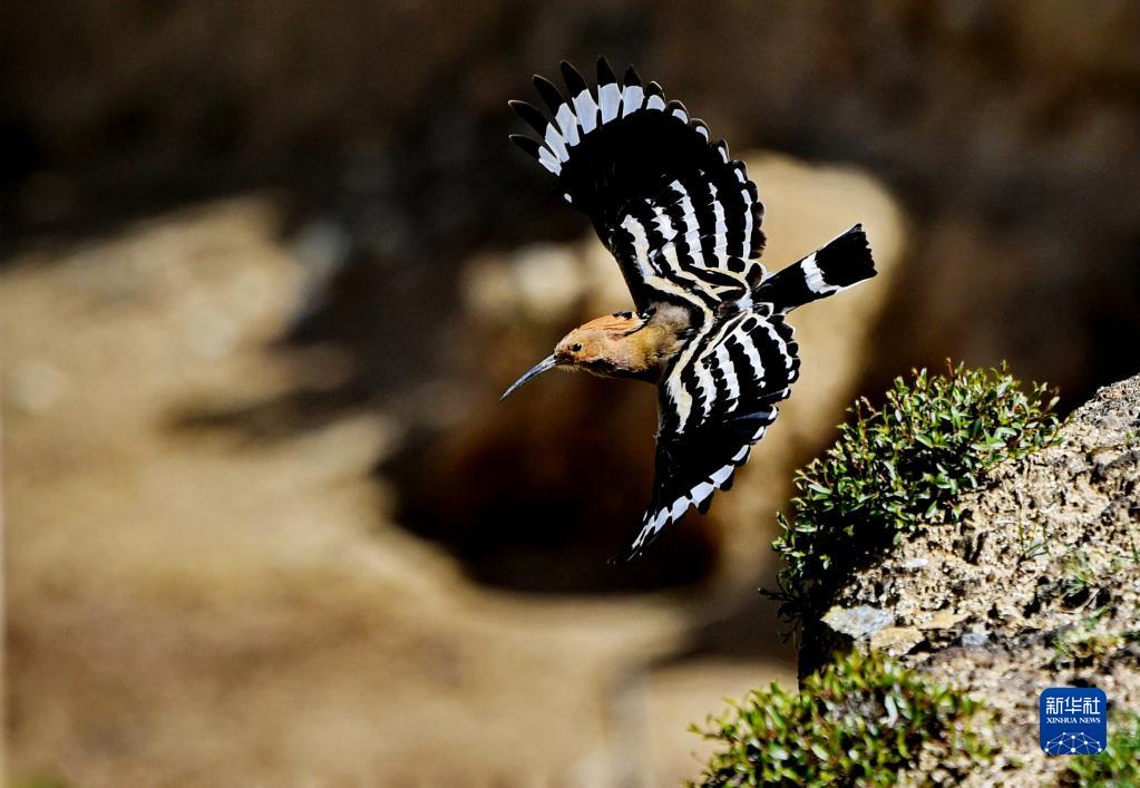 飛翔中的戴勝(6月29日攝)。夏日,拉薩市城關區蔡公堂街道白定村綠意盎然,成為戴勝等鳥類的樂園。