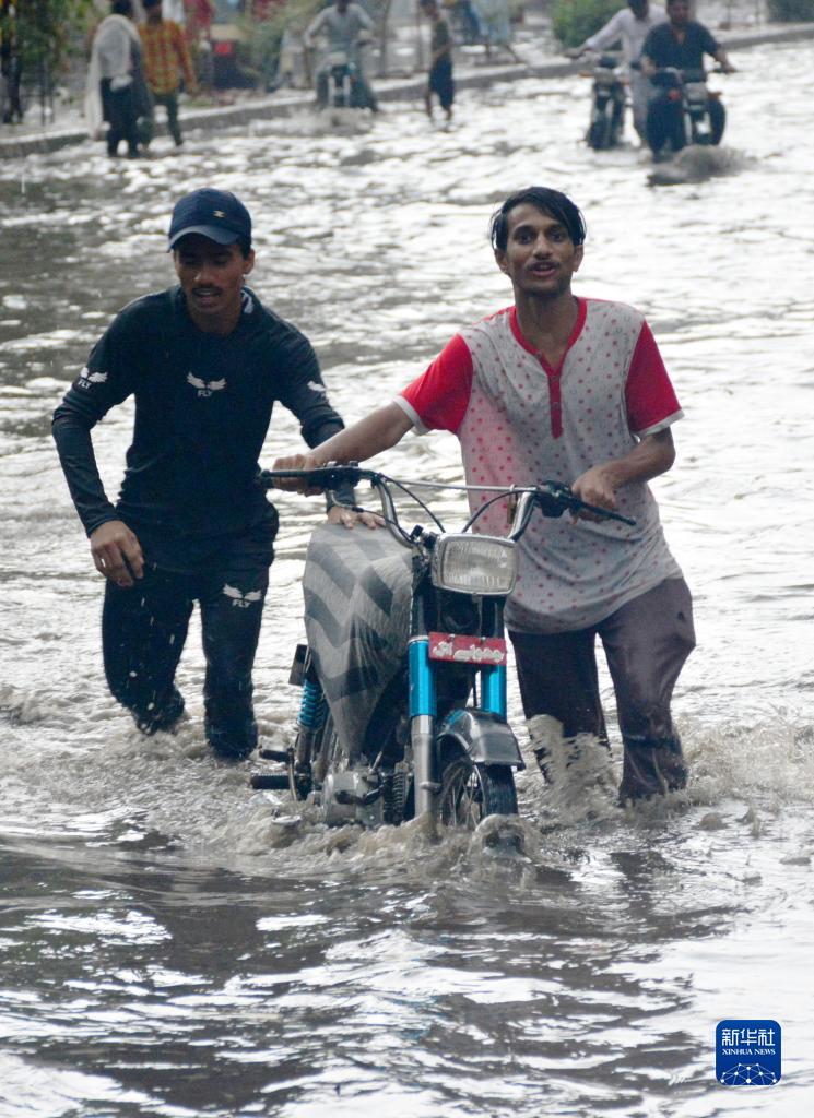 海得拉巴當(dāng)日的強(qiáng)降雨導(dǎo)致路面積水,給人們出行帶來(lái)不便。
