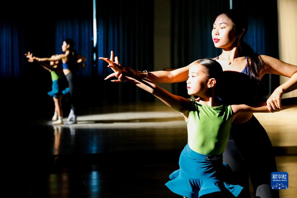 7月8日,在河南省焦作市武陟縣一家培訓機構,舞蹈老師指導學生練習舞蹈動作。
