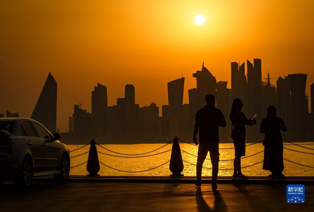 這是7月6日在卡塔爾多哈拍攝的日落景象。