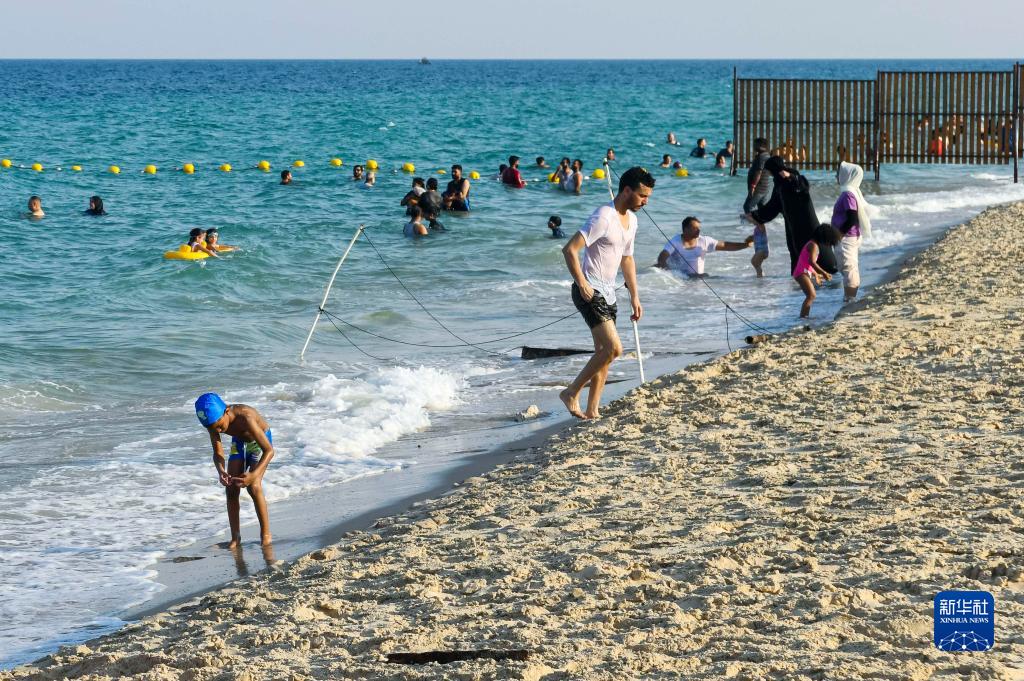 7月7日,在卡塔爾多哈,人們?cè)诤_呄睢?/p>