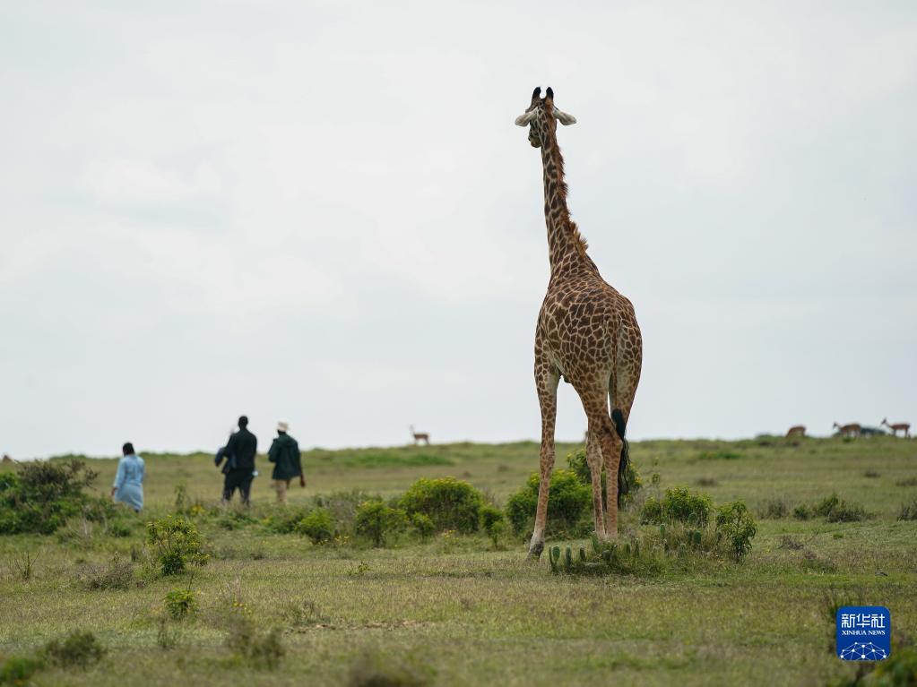 7月8日,一只長頸鹿在肯尼亞奈瓦沙湖新月島上活動。