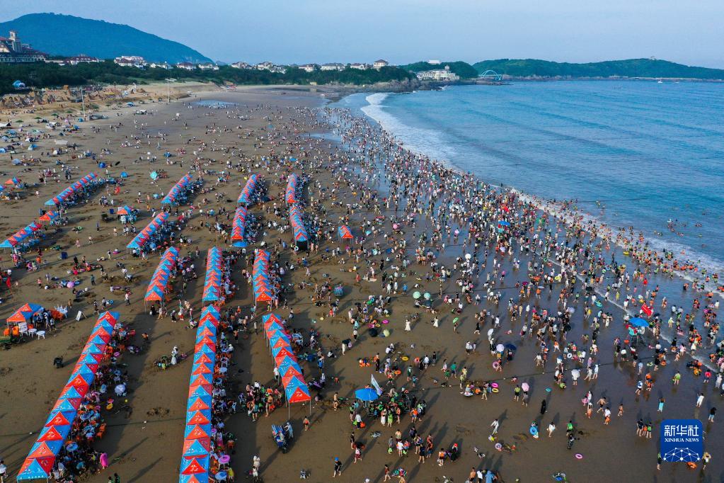 7月初開始,地處東海之濱的浙江省舟山市朱家尖南沙景區、東沙景區迎來了暑期旅游旺季,景區日均游客量在2萬人次左右。為全面提升游客的體驗感,朱家尖景區開啟了暑期“夏日歡樂季”,包括舟山國際沙雕節、沙灘煙花秀、沙灘電影、海上沖浪、星空露營、沙灘游樂場、風帆游船等特色旅游項目,讓來自各地的游客充分感受東海之濱的夏日魅力。