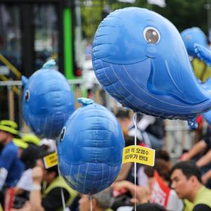韓國市民團體“阻止日本放射性污染水排海全國行動”8日舉行今年5月以來的第四次大規模集會。人們手持鯨魚模樣的藍色氣球,舉著“反對排放放射性核污染水”等標語,對日本政府不顧鄰國及國際社會擔憂執意推動核污染水排海計劃表示憤怒。