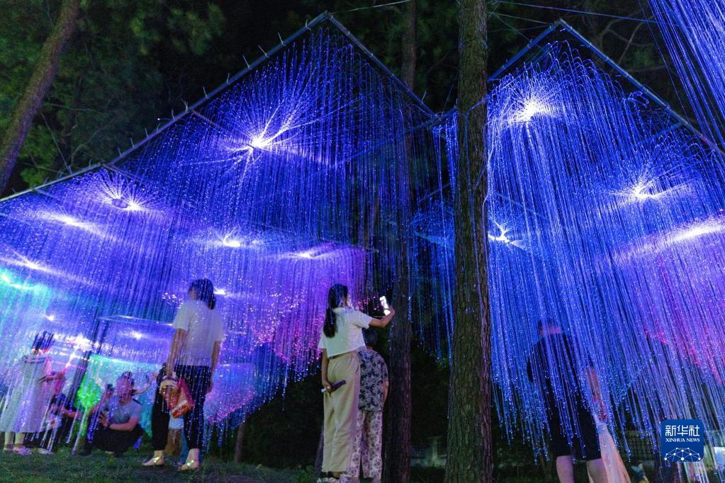 暑期,安徽省合肥市肥東縣橋頭集鎮(zhèn)歡樂森林景區(qū)內(nèi)游人如織,該景區(qū)7月8日起至8月31日策劃炫彩燈展,結(jié)合美食節(jié)等夜間活動,點燃了酷暑之下的鄉(xiāng)村游新熱點。