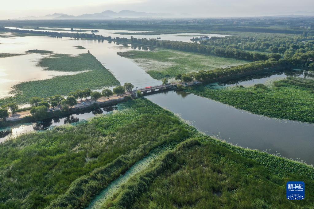 7月9日拍攝的白云湖國家濕地公園景色(無人機照片)。