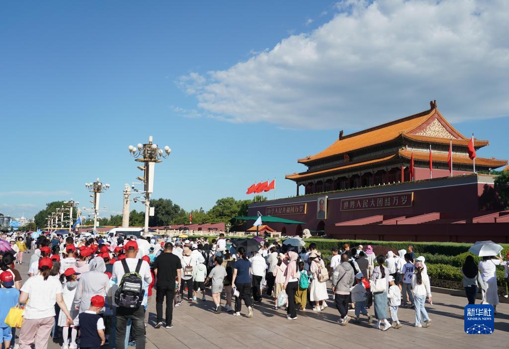 時值周末,許多市民和游人來到北京天安門廣場、前門大街等景點參觀游覽,樂享暑期。