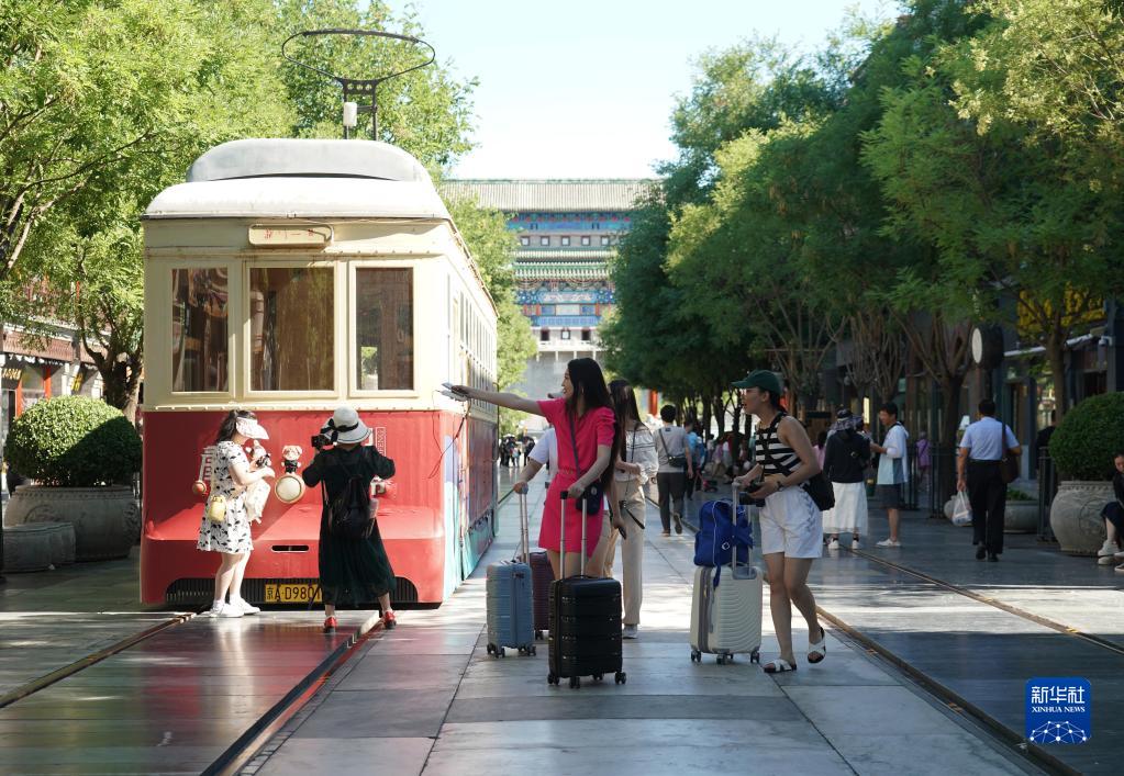 7月9日,人們在前門大街參觀游覽。