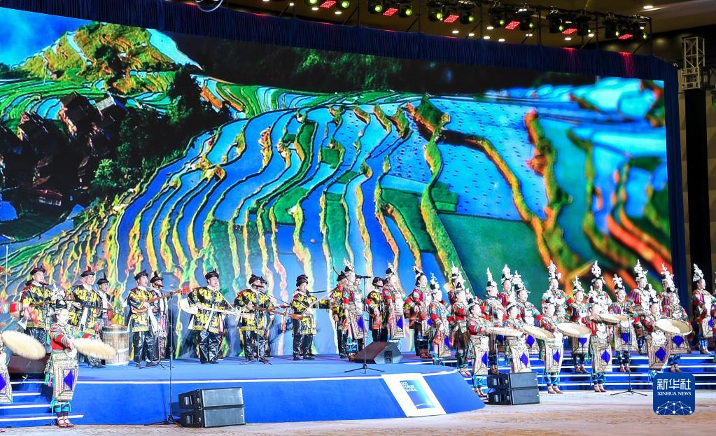 7月9日,演員在2023年生態文明貴陽國際論壇閉幕式上演唱侗族大歌。