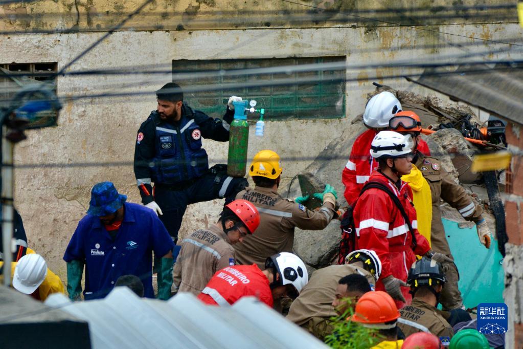 7月7日,救援人員在巴西伯南布哥州累西腓的建筑坍塌現場工作。
