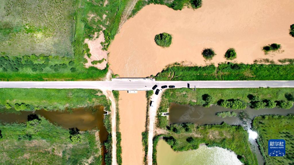 正在進行生態補水的黃河三角洲國家級自然保護區(無人機照片,2023年6月30日攝)。