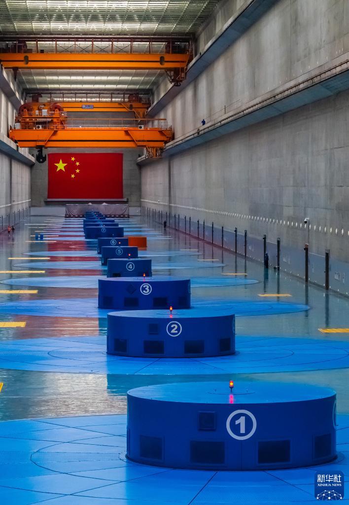 7月10日在湖北省宜昌市拍攝的長江三峽左岸發(fā)電機(jī)組內(nèi)景。