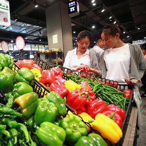 7月10日,消費者在山東省濱州市惠民縣何坊街道一家超市選購蔬菜。