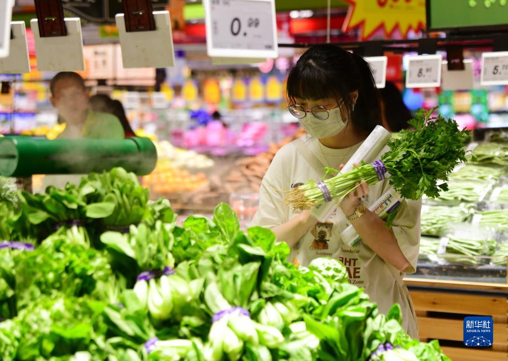 7月10日,顧客在江蘇省無錫市一家超市選購蔬菜。