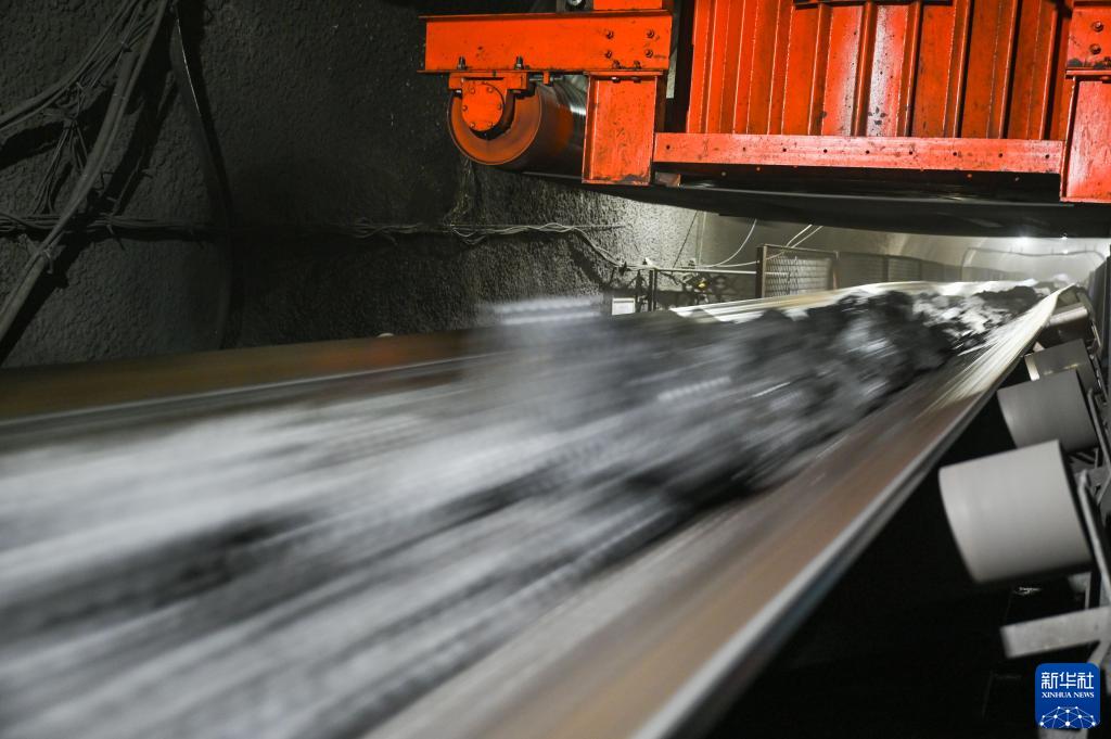 7月8日,大唐龍王溝煤礦采挖的煤炭經傳送帶運往地面儲煤裝置。