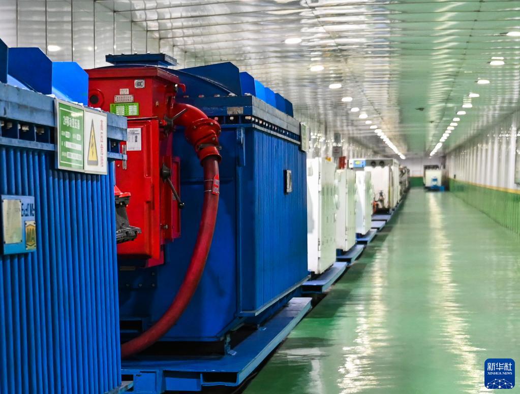 這是7月8日在大唐龍王溝煤礦井下拍攝的電力智能變頻設(shè)備。