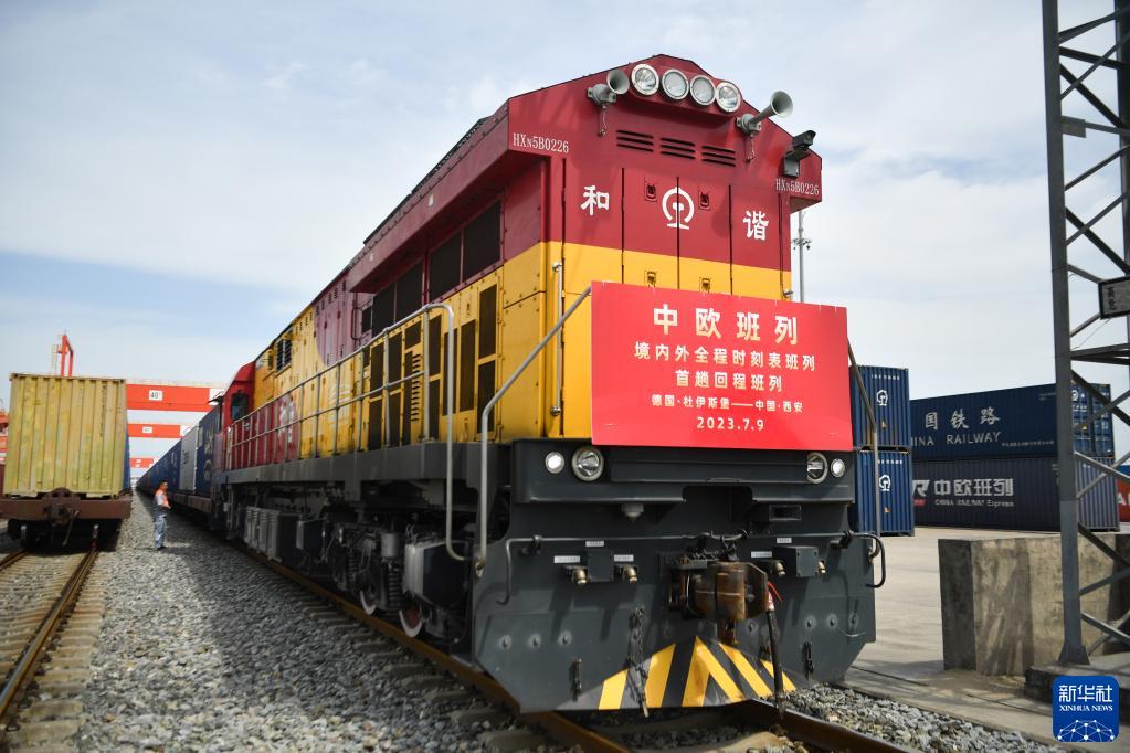 這是7月10日拍攝的從德國杜伊斯堡返回西安國際港站的X8008次中歐班列。