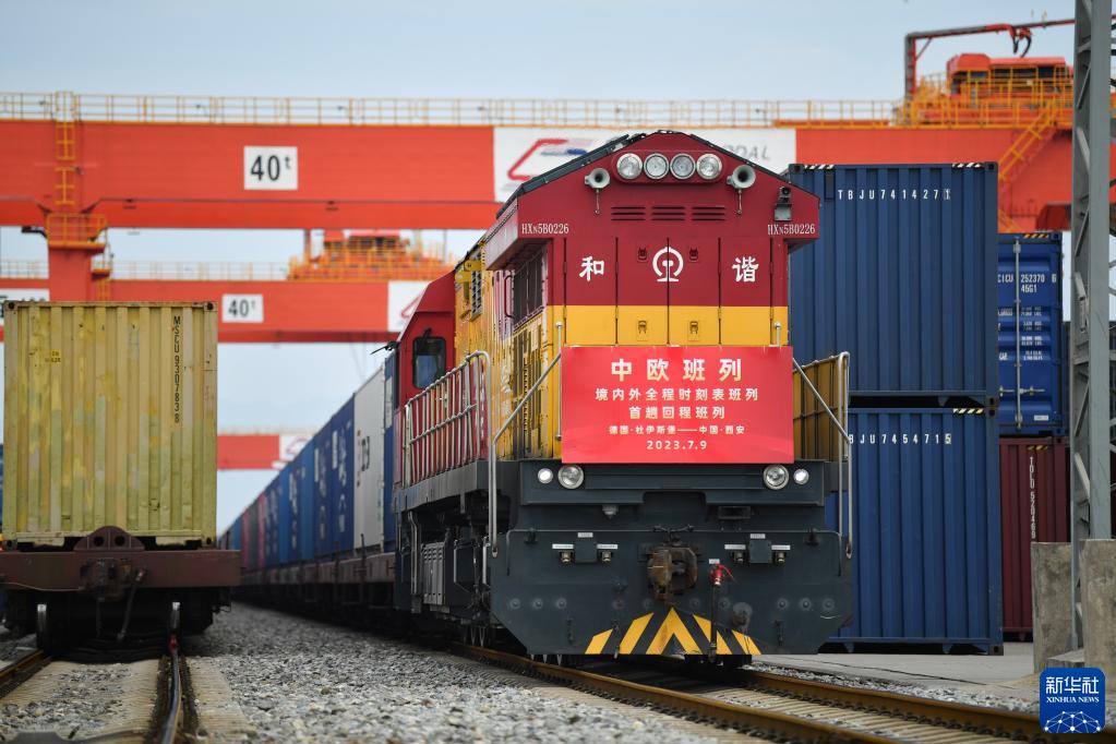 這是7月10日拍攝的從德國杜伊斯堡返回西安國際港站的X8008次中歐班列。