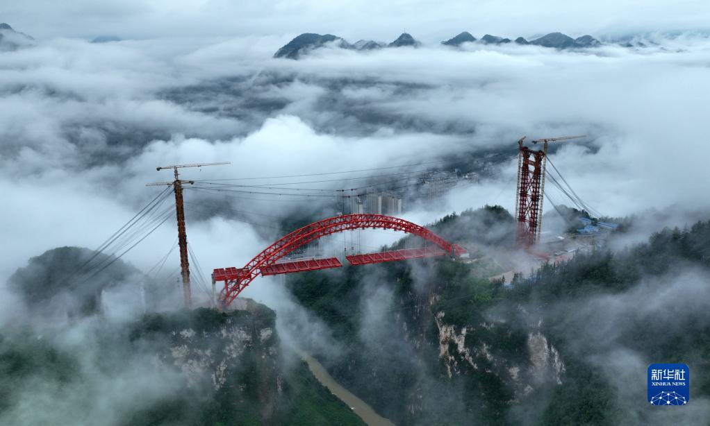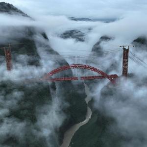 目前,位于湖北省恩施土家族苗族自治州鶴峰縣境內的溇水河特大橋鋼梁吊裝即將完成。溇水河特大橋是宜(都)來(鳳)高速公路鶴峰東段的控制性工程。大橋全長328米,橫跨深度300多米的峽谷。