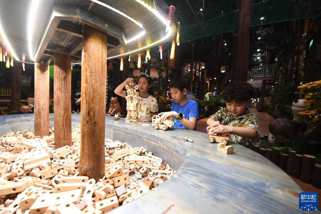 7月10日,小朋友在位于東臺的黃海國家森林公園玩耍。