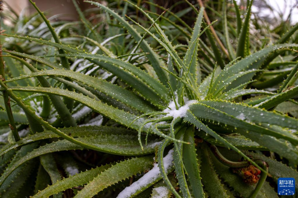 7月10日,在南非約翰內斯堡一處居民區,雪花落在植物上。