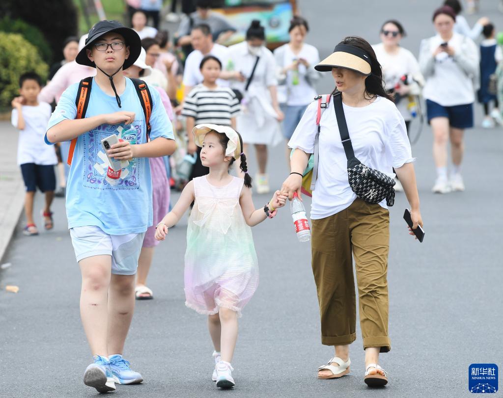 7月10日,游人在杭州西湖景區觀光。