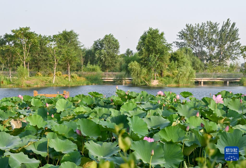 這是7月10日拍攝的北京南六環附近新鳳河北岸的安南濕地環保主題公園。