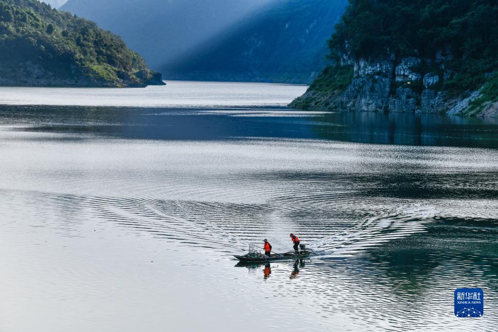 七月的烏江河谷,在夕陽西下時依然酷熱難耐。盧錫永和冉茂英駕駛小船,忙著清理前幾天因上游漲水沖下來的漂浮物。一人打撈,一人掌舵,夫妻倆分工協作,配合默契。這一干,就是37年。