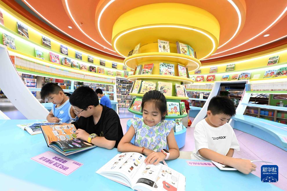 7月12日,小朋友在河北省石家莊市一家書城閱讀。