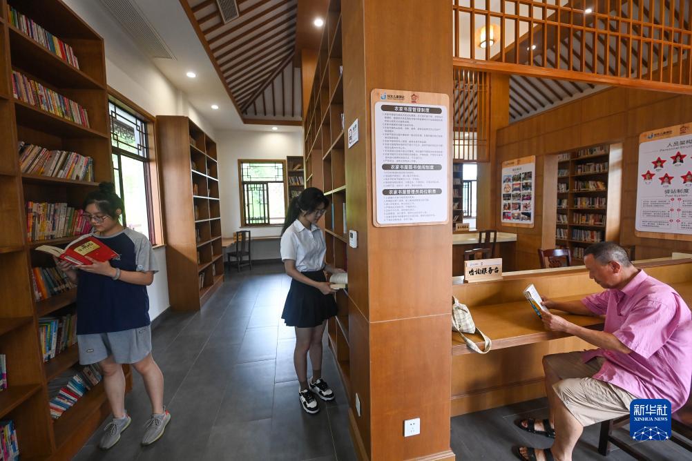 7月13日,在上田村農家書屋,村民在法律圖書角閱讀。上田村專門設立農家書屋法律圖書角,內容涵蓋法律書籍、法治宣傳漫畫、法治期刊等。