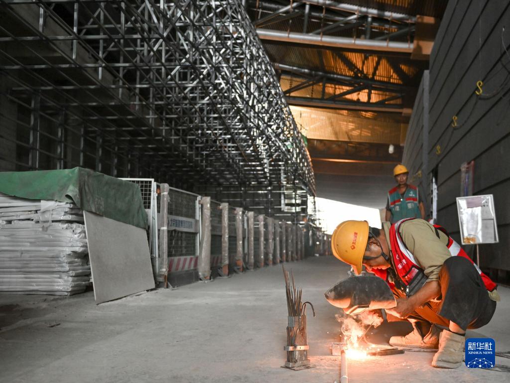 7月13日,工人在北京城市副中心博物館項目施工現(xiàn)場施工。