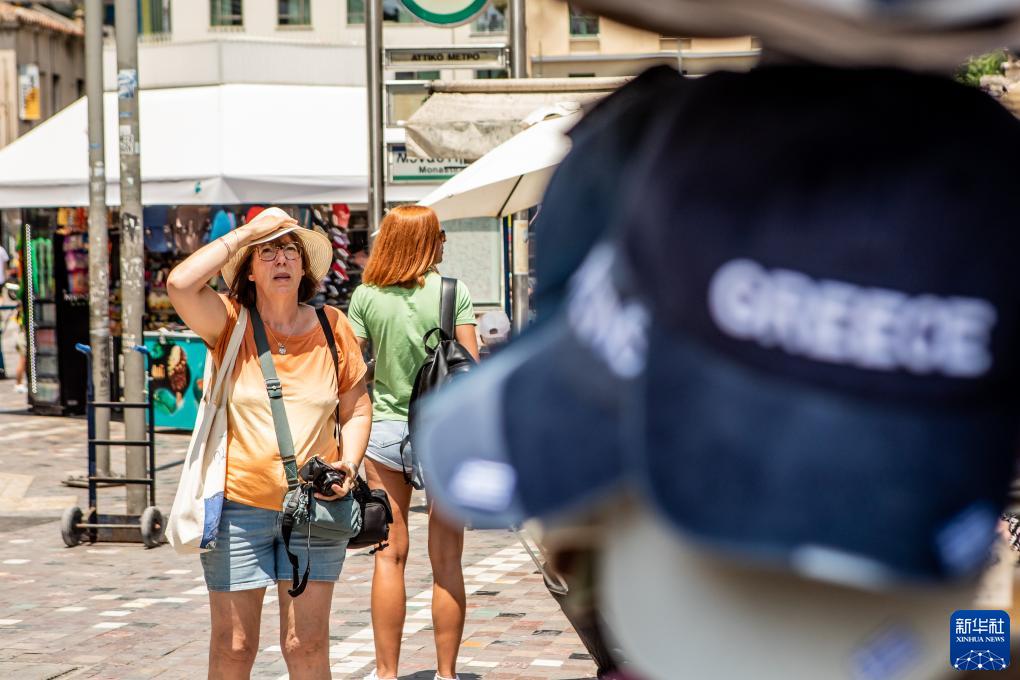7月12日,游客頂著烈日游覽希臘雅典。