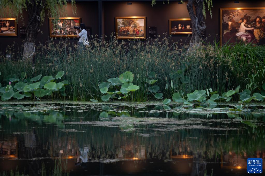 這是北京亮馬河畔舉辦的歐洲油畫展(6月16日攝)。