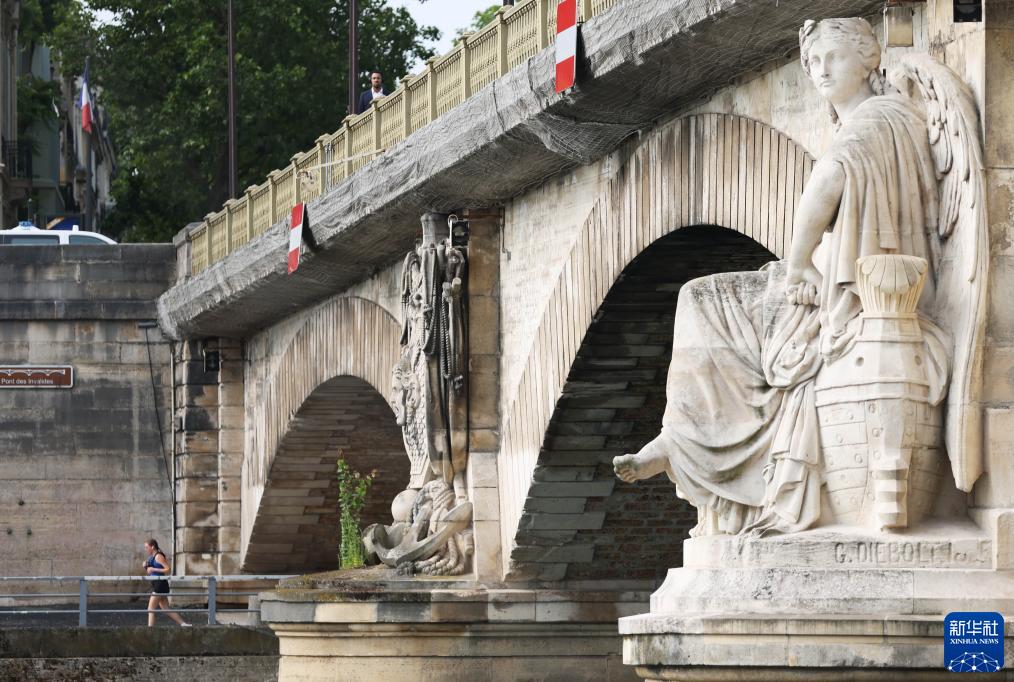 這是一名女子在法國巴黎塞納河邊晨跑(7月4日攝)。