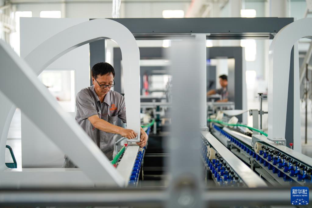 7月13日,河北省玉田縣一家印刷包裝機械制造企業的工人在生產線上工作。