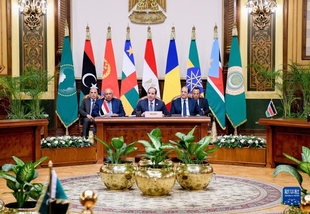 蘇丹鄰國峰會13日在埃及首都開羅舉行,會后發(fā)布公報,反對外國勢力干預蘇丹事務,敦促蘇丹沖突雙方立即進行全面談判,和平解決這場歷時數(shù)月的沖突。這次峰會由埃及總統(tǒng)塞西主持,蘇丹鄰國乍得、中非共和國、厄立特里亞、埃塞俄比亞、利比亞和南蘇丹領導人,以及阿拉伯國家聯(lián)盟秘書長蓋特和非洲聯(lián)盟委員會主席法基出席會議。新華社發(fā)(埃及總統(tǒng)府供圖)