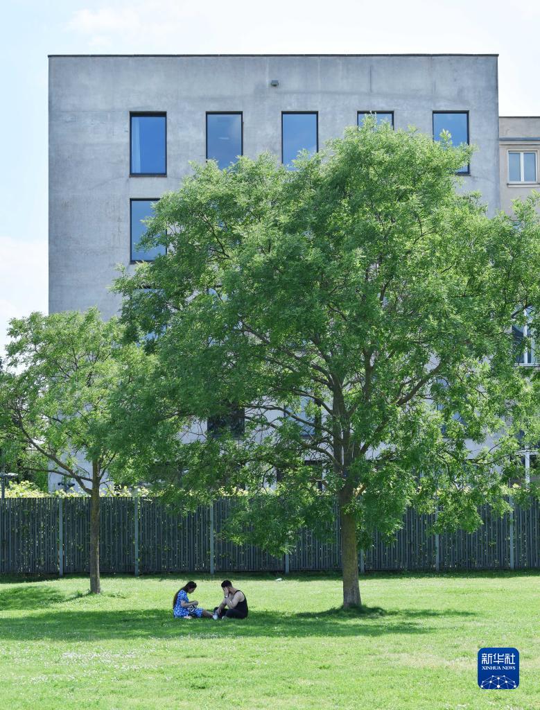7月13日,在德國柏林,人們在樹蔭下乘涼。